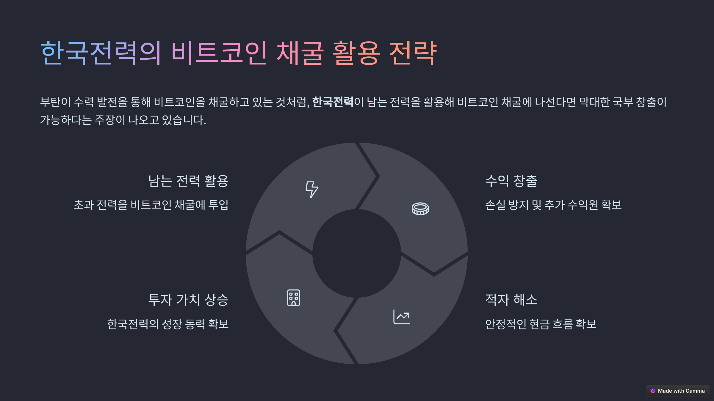 - 한국전력의 비트코인 채굴 등 국부 창출 기회 주목