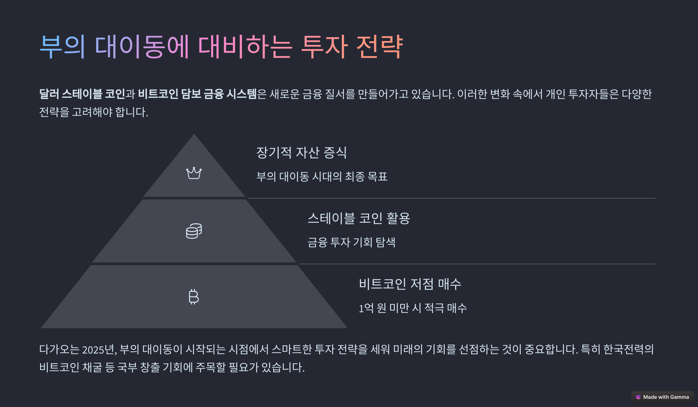 다가오는 2025년, 부의 대이동이 시작되는 시점에서 스마트한 투자 전략을 세워 미래의 기회를 선점하는 것이 중요합니다.