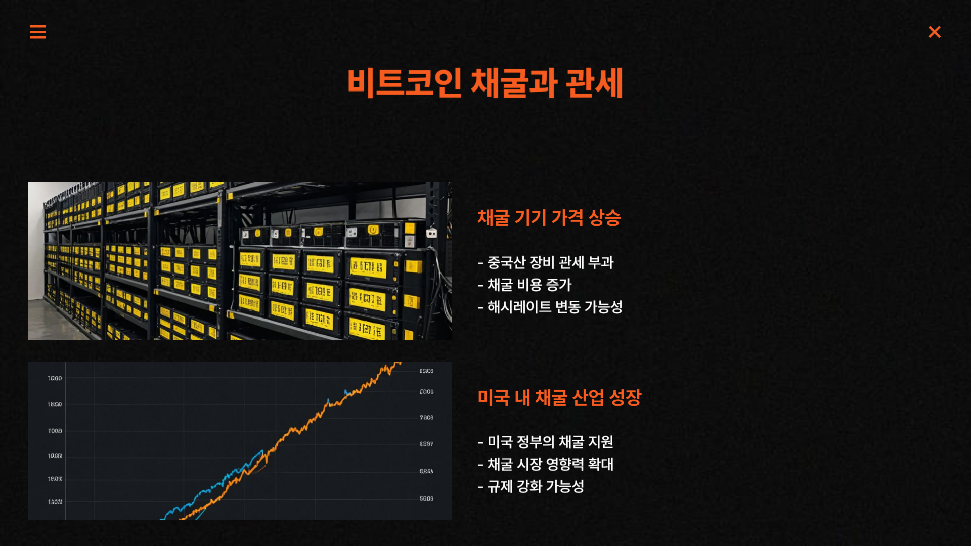 비트코인 채굴 기기의 대부분은 중국에서 생산되며, 미국에서의 채굴이 증가하는 상황에서 관세 부과는 채굴 비용을 상승시키는 요인으로 작용할 수 있습니다.