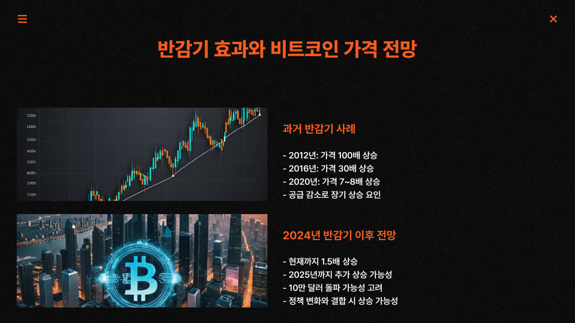 관세 전쟁과 글로벌 경제 불확실성이 지속되면서, 비트코인은 대체 자산으로 더욱 주목받고 있습니다. 특히 트럼프 행정부의 정책 변화와 2024년 반감기 효과가 결합되면, 장기적으로 비트코인의 상승 가능성이 높아질 것입니다.