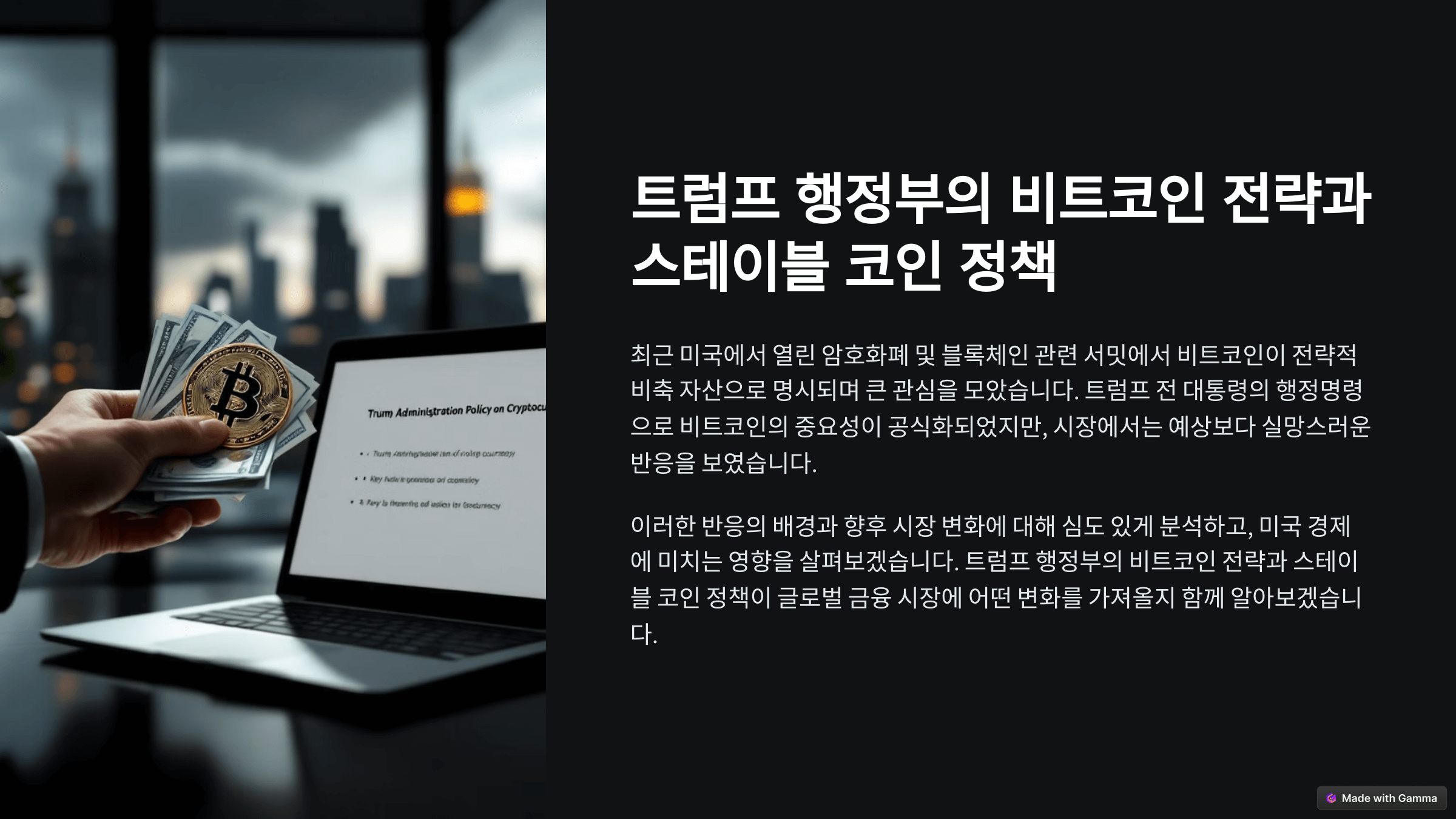 최근 미국에서 열린 암호화폐 및 블록체인 관련 서밋에서 비트코인이 전략적 비축 자산으로 명시되며 큰 관심을 모았습니다. 트럼프 전 대통령의 행정명령으로 비트코인의 중요성이 공식화되었지만, 시장에서는 예상보다 실망스러운 반응을 보였습니다. 이번 포스팅에서는 이러한 반응의 배경과 향후 시장 변화에 대해 심도 있게 분석해보겠습니다.